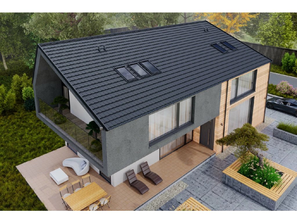 Die Module mit 350 mm verbinden elegante Optik mit moderner Technologie. Dank firmeneigener Lösungen ist die Montage besonders einfach, und die Verbindungen bleiben unsichtbar – für ein ästhetisches und langlebiges Dach.